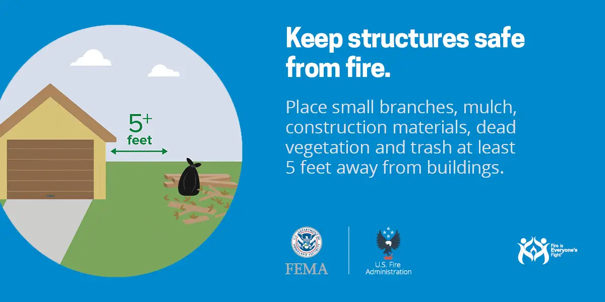 - Create a safety zone of up to 100 feet around your home. Remove pine needles and dry leaves from around your home. Keep woodpiles at least 30 feet from your home.